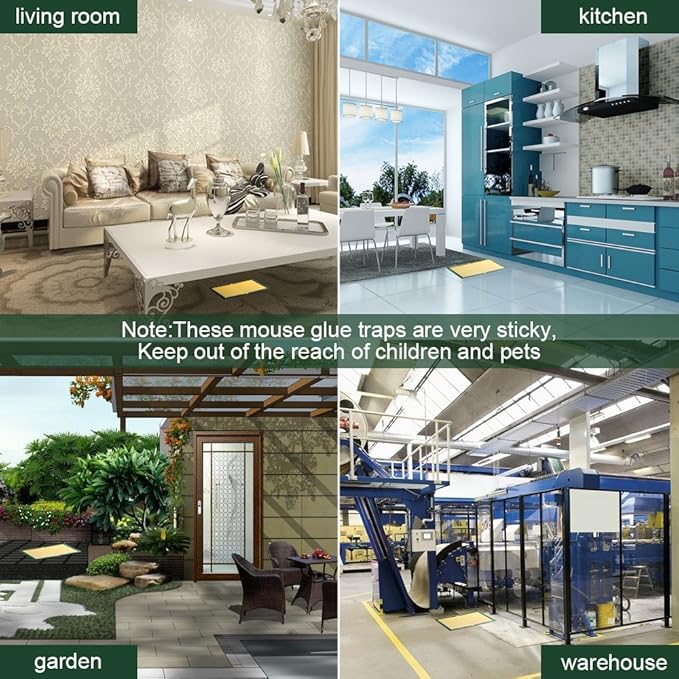 - Easy to use, these glue traps have a flexible design for use in tight spaces. Just place it where mice are observed frequently, such as indoor, kitchen, office, meeting room, restaurant, behind appliances, under sink, near garbage areas etc.