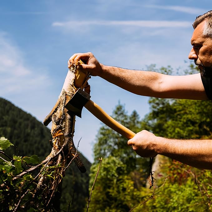 - HICKORY HANDLE FOR DURABILITY - Designed with American hickory, this handle absorbs shock and offers superior strength. Featuring refined root wood sublimation, the hickory handle enhances grip and style, making it an ideal choice for cutting, chopping, bushcraft, or camping hand ax needs.