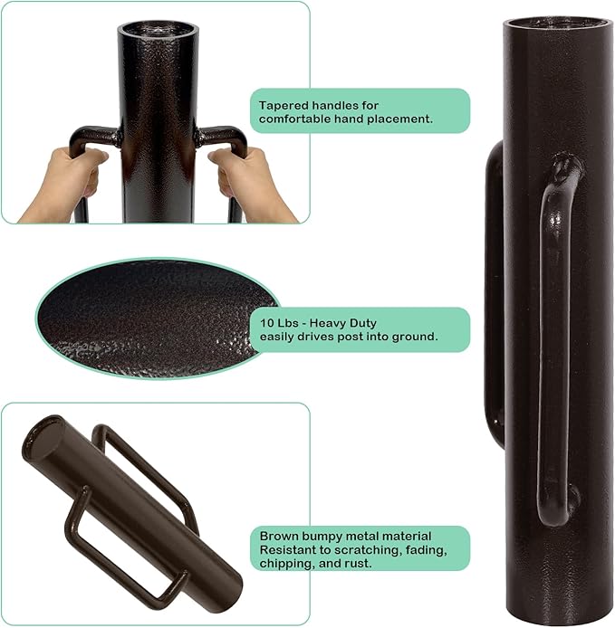 - Applications of heavy duty t post driver: The post driver with handles has features of two handles on both sides of the driver making it is easy to maneuver and comfortable gripping. Post driver designed to drive t-post, wood, metal or any type of fence posts