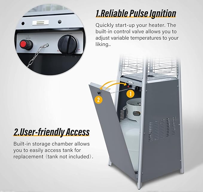 - Easy to Assemble - Assembling this outdoor propane heater by 2 people within about 90 minutes, please read and follow the instruction manual to avoid unnecessary wrong steps and save time.