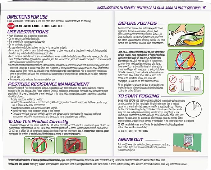 - KILLS BED BUGS AND FLEAS: Hot Shot BedBug & Flea Fogger also controls lice, ticks and other listed insects.