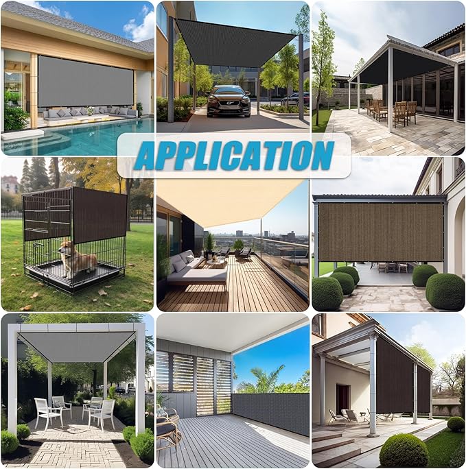 - Easy to Install: Attach to the fit size structure with zip ties or bungee balls (this shade cloth comes with 30 zip ties,12 bungee balls,and 6 nylon rope as a bonus); strapped it down on the pergola or patio with screws for more stable