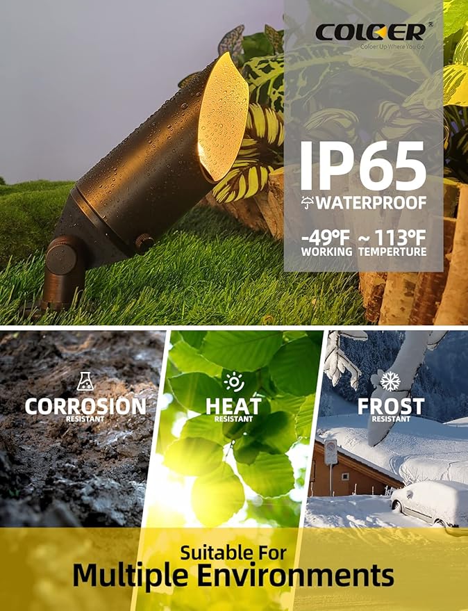 - Replaceable Bulb: The COLOER adjustable bronze landscape spotlight uses a design with separate light fixture and bulb, which offers a longer lifespan compared to the non-detachable integrated design. You can replace the bulb without having to replace the entire fixture just because the bulb is broken. COLOER landscape lighting offers a lifetime warranty on the light fixture(painted finish is 10 years) and a 5 years for the LED bulb.