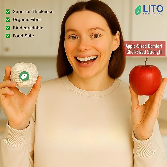 Organic Butcher’s Twine for Cooking & Trussing – 1.2mm Heavy-Duty Natural Cotton Kitchen Twine 200 Feet – Food-Safe, Oven-Safe String for Meat, Turkey, Baking, & Crafts