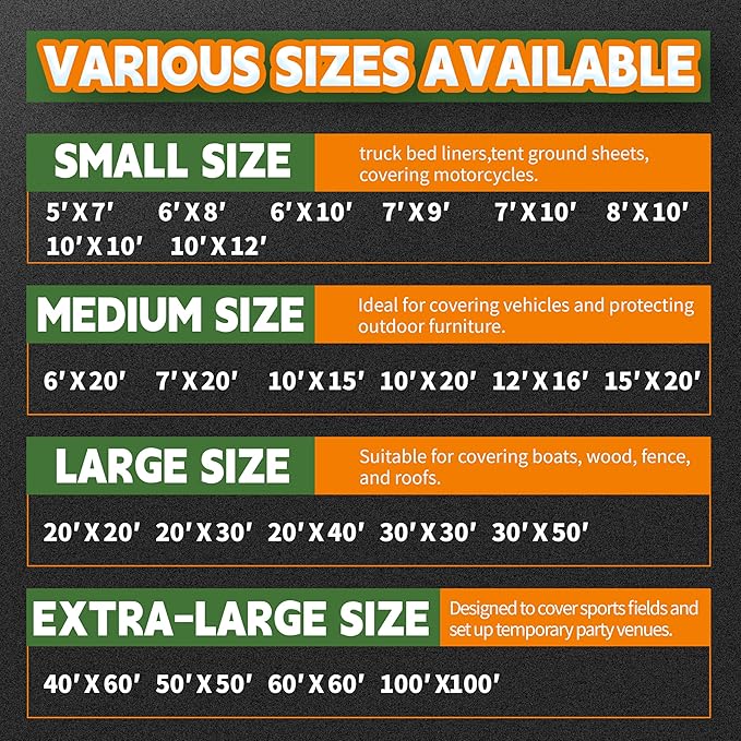 - 【UV RESISTANT TARP +WEATHER PROOF】 This white tarp can provide a UV protection in the sun, it has extra thickness and it fits for what you wanted it to do,Mother Nature can be unpredictable, but you can be prepared