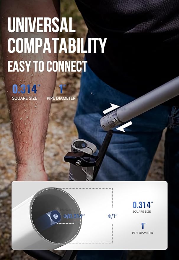 - EASILY CONNECTS TO ATTACHMENT: 0.31" Square size ,1" Pipe Diameter,1.25" Universal Size and 0.216"Diameter.
