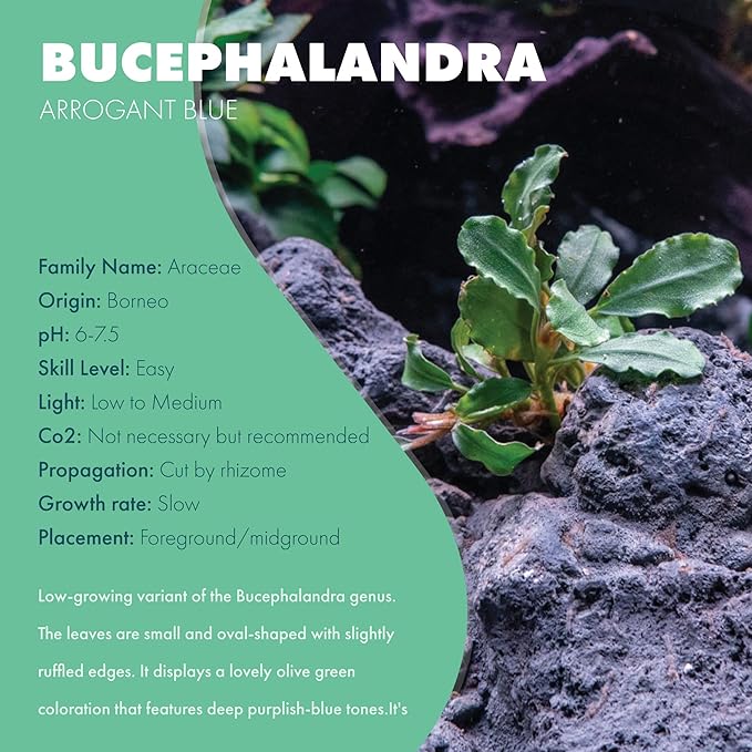 - Bucephalandra is an epiphytic aquarium plant so it can be attached to aquarium hardscape, and looks great in many different aquariums or terrariums.