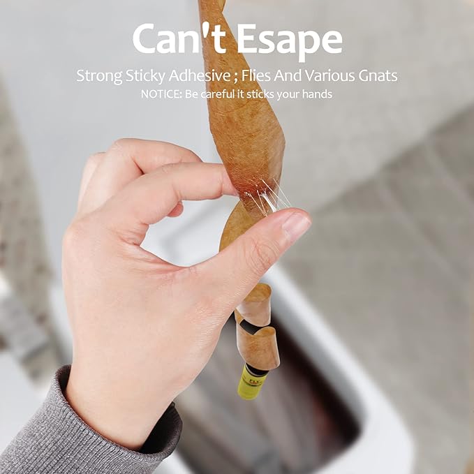 - Sticky Fly Traps for Indoor: Fly strips is made of an integrated plastic tube that is sturdy and not easy to disperse. Fruit fly traps is made of ultra-thick glue and waterproof paper and the paper is not easy to tear. Each tube includes a hanging rope and thumbtacks for easy installation anywhere. The fly paper uses a sticky ribbon to attract and trap flies and other aerial insects. Safe and durable.