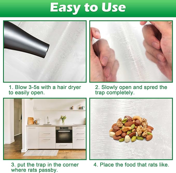 - More Healthier to Use: Compared with other rat trap, our mouse glue traps are made of eco-friendly material. They are more healthyer for your family, kids and pets. It’s a real green environmental product.