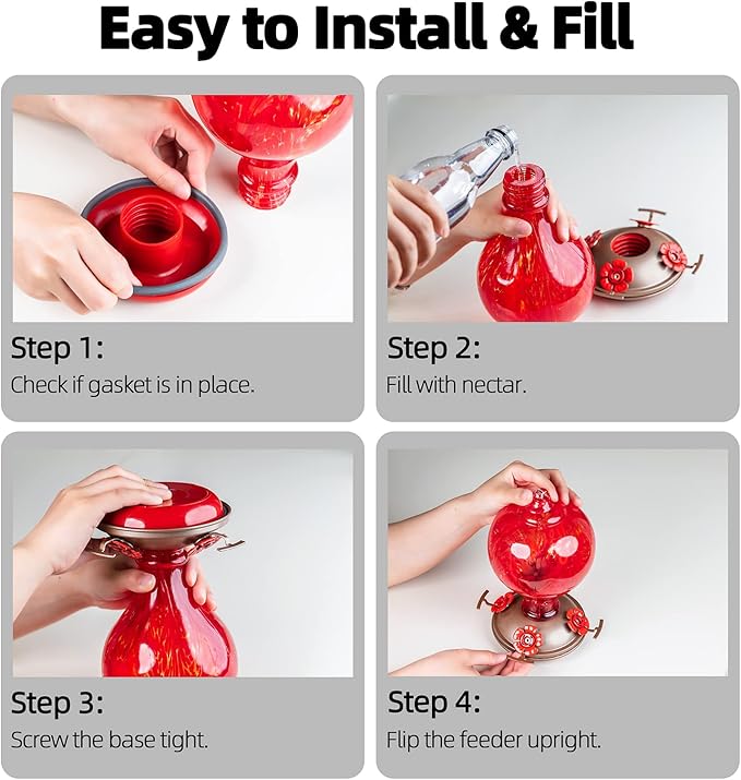 - 【Easy to Fill & Clean】Designed with wide mouth opening, it's easy to fill with nectar, also convenient to clean with a bottle brush.