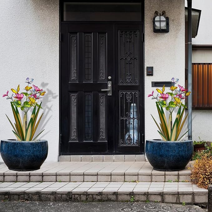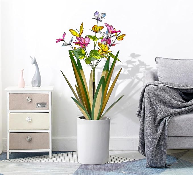 TOMBABY Garden Outdoor Butterfly Enlarge Thickened Wind Resistant Metal Agave Garden Art Metal Plant Country Sculpture Statue Decorations Ornaments Artificial Waterproof lieslight Green 3pcs