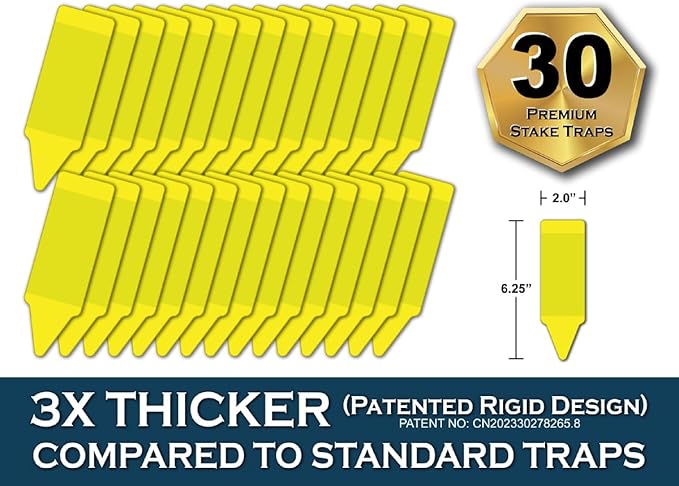 - ✅ QUALITY DESIGN: While fun shapes may appear charming for gardening accessories, they can potentially disturb your plants or prove challenging to position. Our simple, garden-themed patented stake shape enables easy insertion into any potted plant or hassle-free hanging on trees. Furthermore, our dual-sided glue stake boasts three times the thickness of other standard traps.