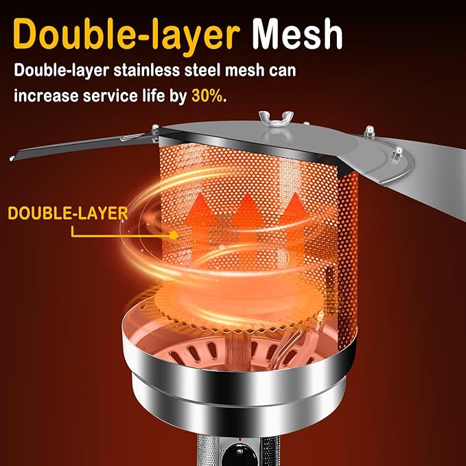 - 【Double-Layer 304 Stainless Steel Burner Mesh】: High quality 304 stainless steel burning grid is used in the design of the double cover heating grid. Compared with traditional single-layer burner mesh heaters, Our Patio Heaters for outdoor use are stronger, more durable, and safer, and the upgraded model's service life can be increased by 30%.