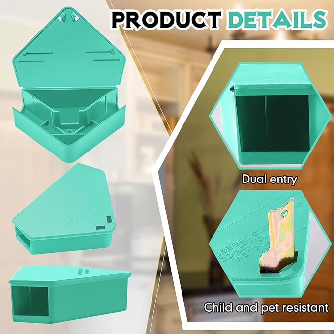 - Triangle Design: the mouse station is designed in a triangle shape, which is stable and safe, suitable for placing in small spaces, corners and under furniture;Please note: The mouse trap station will not catch mice directly, please use it with poison bait