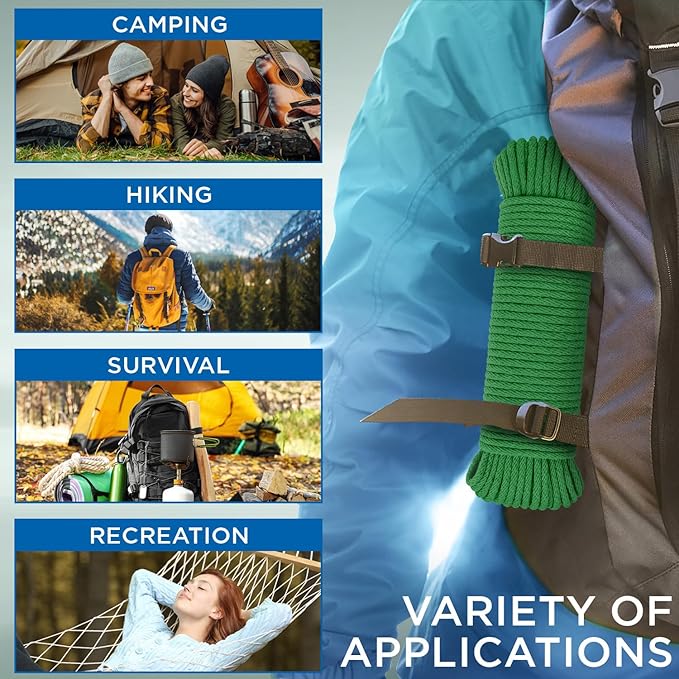 - MUST-HAVE: General Application Rope is widely used for tying down equipment, weaving hammocks, as window sash cord, clothes line cord, moving rope, laundry line, flagline rope, etc. The thin cotton rope is essential for every home. Always have it on hand in your car, garage, garden or home.