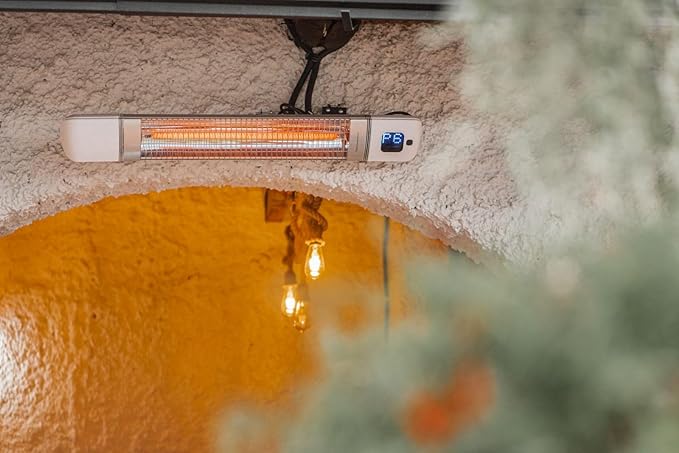 - Energy-Efficient: Our infrared heater has a carbon heating element that is built to last up to 10,000 hours. This electric heater energy efficient and provides warmth to any space up to 25m². Save energy with adjustable timer settings from 1 to 9 hours and a waterproof, dustproof design