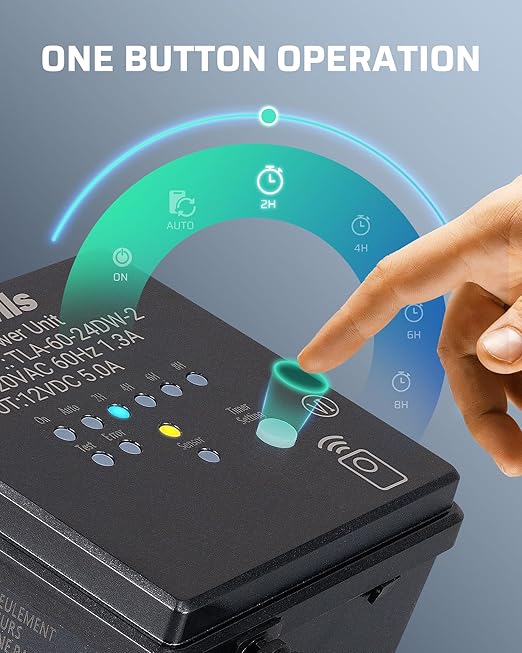 - [Auto Dusk to Dawn & Timer] Dewenwils landscape lighting transformer features a photocell sensor and timer - auto ON at dusk and OFF at dawn, or countdown to turn off after 2/4/6/8 hours; memory function remains your previous settings even after a power outage(Please note the transforemr not for Halogen light)
