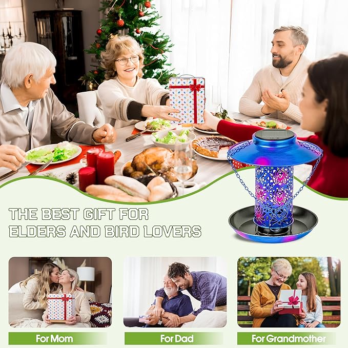 - 【Unique Gift】A Wonderful Garden Present - The solar bird feeder comes in a beautifully designed box. An ideal gift for Mom/Grandma/Wife/Daughter/Sister/Aunt/Grandma, girlfriend/boyfriend, wife's wedding anniversary, child's birthday, mother's birthday, or Mother's Day, Father's Day, Thanksgiving Day, Valentine's Day, and Christmas.