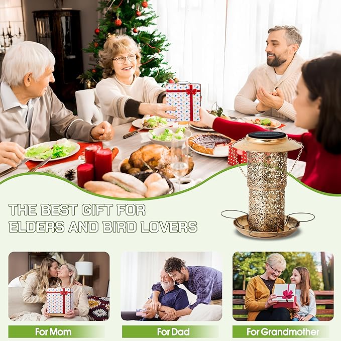 - 【Unique Gift】A Wonderful Garden Present - The solar bird feeder comes in a beautifully designed box. An ideal gift for Mom/Grandma/Wife/Daughter/Sister/Aunt/Grandma, girlfriend/boyfriend, wife's wedding anniversary, child's birthday, mother's birthday, or Mother's Day, Father's Day, Thanksgiving Day, Valentine's Day, and Christmas.