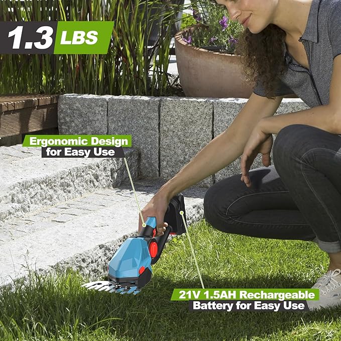 - CORDLESS CONVENIENCE: Easy to operate with one hand and weighs just 1.3 lbs. Whether you're trimming the edge of a hedge or an overgrown lawn, this electric hedge trimmer cordless responds to your commands. This hedge trimmers cordless with battery is the perfect gardening tools for homeowners, gardeners, landscapers and garden enthusiasts, and it's also the perfect gift for birthdays, housewarming, Father's Day, Mother's Day, Thanksgiving, anniversaries, Valentine's Day and Christmas.