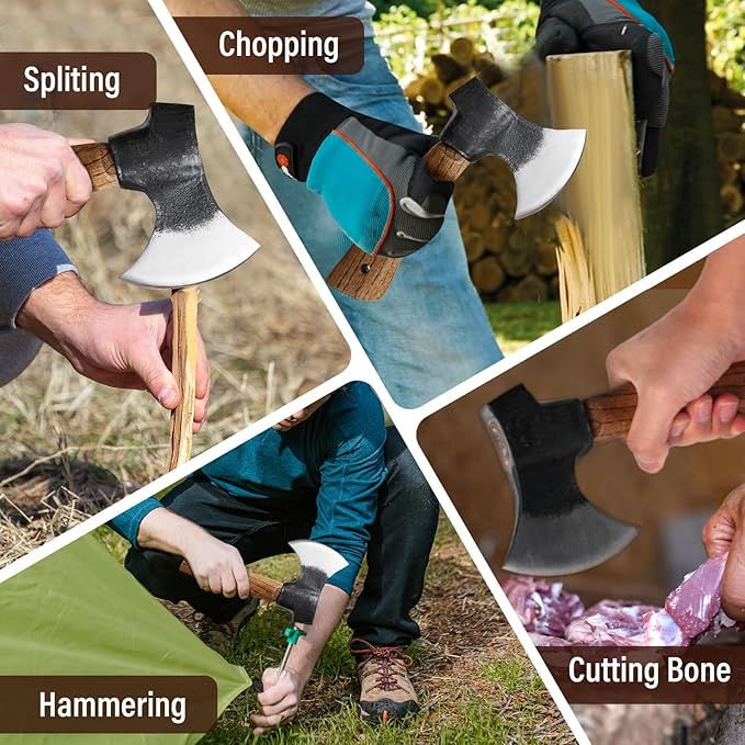- Multi-scenario Use: This axe is powerful yet lightweight , can be used for splitting wood, chopping wood, chopping bones, hammering, suitable for use as a camping axe, gardening axe, survival axe, and hunting axe