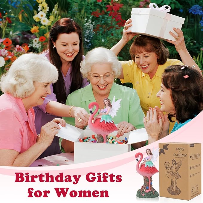 Solar Fairy & Flamingo Garden Decor Statue, Outdoor Funny Solar Light Decoration for Yard, Patio, Lawn, Unique Housewarming, Birthday Gift for Women, Mom, Grandma