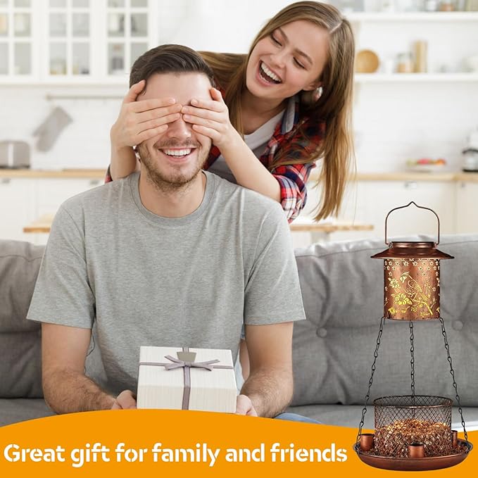 Cardinal Bird Feeder for Outdoor Gifts for Women Mom Grandma Hanging Metal Wild Birdfeeder Garden Solar Lantern Decor Lanterns Outside for Yard Patio Lawn Pathway Landscape