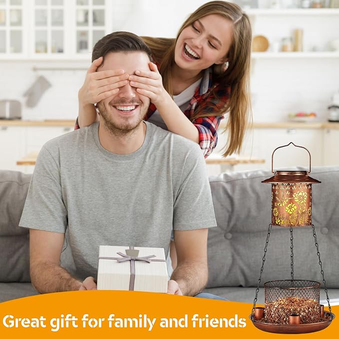 - 【Occasion】It is not only a bird feeder for outdoors hanging, but also a Solar garden lantern at night.The light shines through the hollow pattern, adding a beautiful breath, Nice present for bird lovers and Beautiful decoration for your garden or backyard.