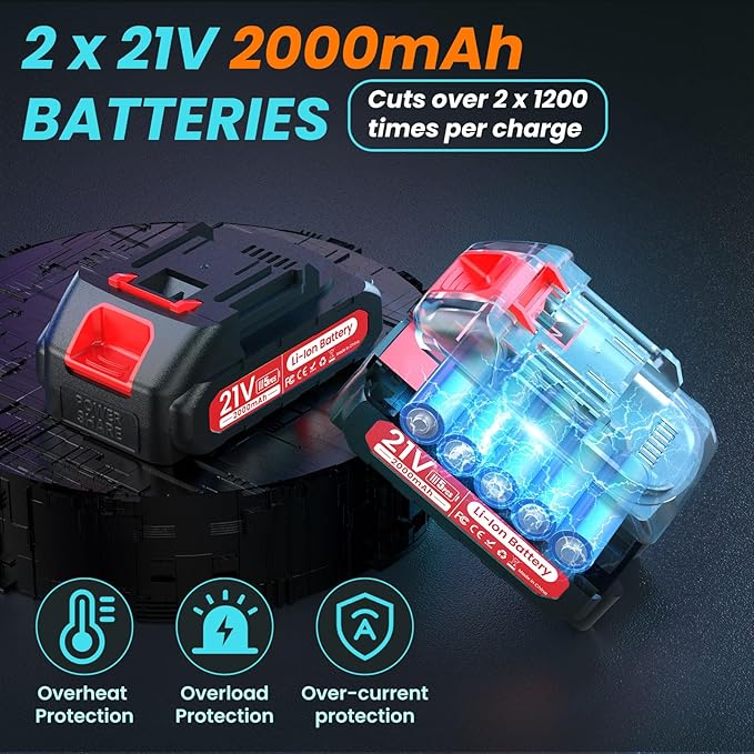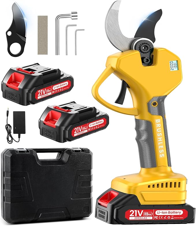 - ✅High-Performance Battery: This electric pruning shear includes two high-energy-density 2000mAh batteries, allowing for over 2,400 cuts (2 x 1200). It is designed to handle even high-intensity, continuous work with ease.