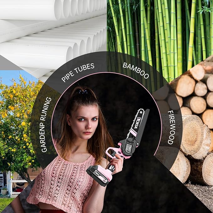 - 【Lightweight and Portable】This 6-inch electric chainsaw cordless weighs only 2.6 pounds (including one battery),making it a truly portable tool. As a handheld chainsaw,its single-hand operation design prevents arm fatigue,allowing women and the elderly to carry it effortlessly and perform cutting tasks anytime,anywhere
