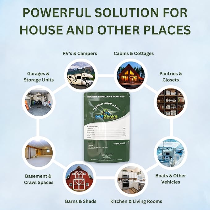 - Easy to Use: Just open the resealable bag and place mice repellent indoor pouches in areas shielded from wind and airflow, and away from bait. No mess, no need to monitor traps, and no dealing with deceased rodents. This easy-to-use pest repellent is perfect for ongoing mice repellent needs.
