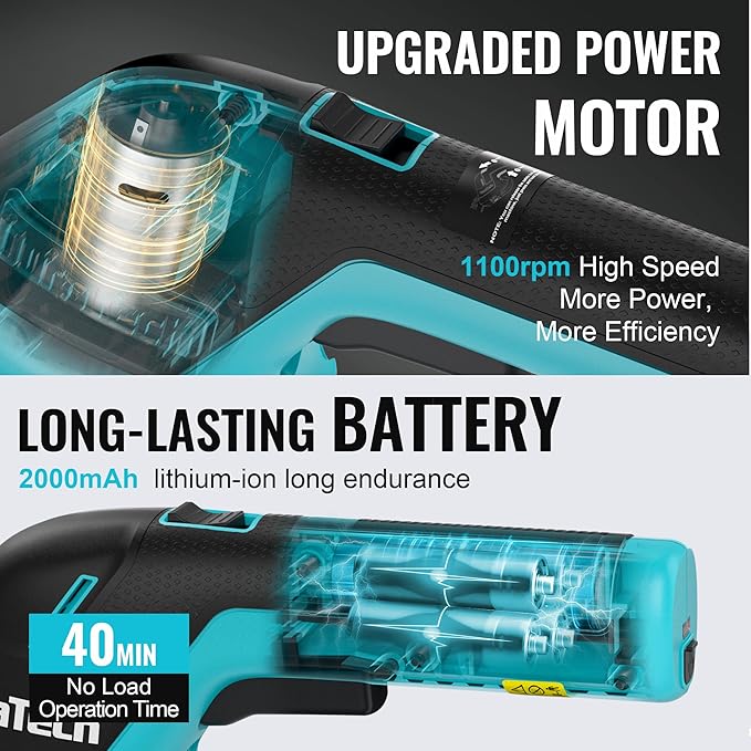 - Type-C Charging & Long Runtime: Powered by a 2000mAh lithium battery with a high-efficiency 7.2V motor. Offers up to 50 minutes of use on a full 3.5-hour charge. Convenient USB-C charging via phone charger, car, laptop, or power bank