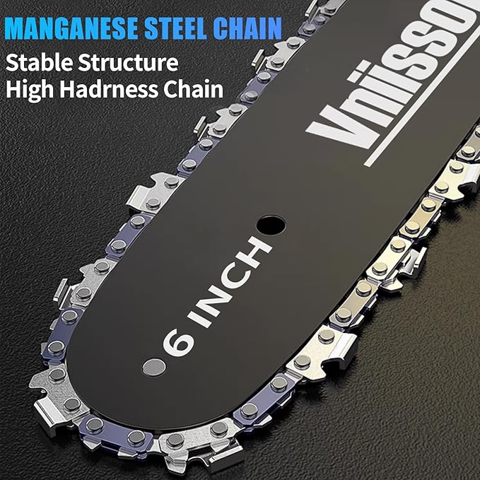 - ăLARGE CAPACITY BATTERY PACKă The Vniissok mini electric chainsaw is equipped with 2000mAh removable & rechargeable battery, the cordless mini chainsaw will finish all your cutting, even in the field! Charging at any time, convenient and fast.If you do not use it for a long time, please remember to fully charge the battery first, for a better experience the next time you use it.