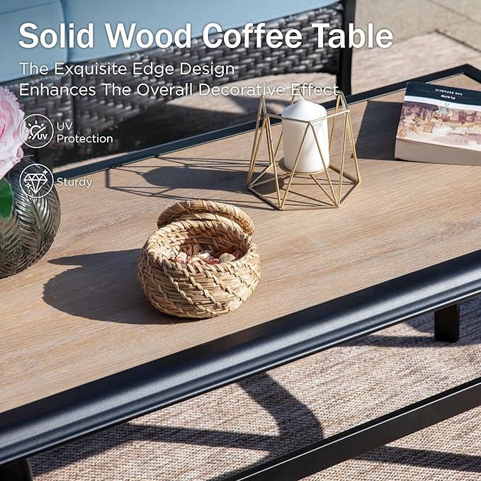 - 【Wood Grain Coffee Table】The unique faux wood grain design coffee table maintains the natural beauty of wood while avoiding the maintenance issues of wood. The use of E-COATING and POWDER-COATING technology can be adapted to all kinds of weather, guaranteeing long-term use