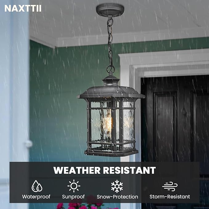 - Unique Water Ripple Glass: The outdoor pendant lights for porch with unique water ripple glass, the lighting effect is more beautiful compared to regular glass,create a warm and charming atmosphere for your house