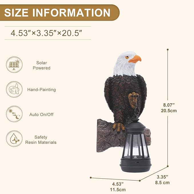 - 🎨【Artisanal Elegance】This 20.5 cm resin eagle statue employs advanced carving techniques to replicate legendary eagle features. A groove on its back ensures secure placement on walls or tree branches, seamlessly transitioning from indoor decor to outdoor garden displays