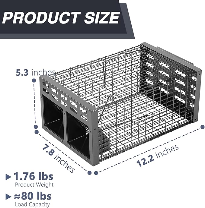 - 【Dual Sliding Door Design】 Equipped with two independent sliding doors, this trap enhances the chances of successful capture from either direction. The rear door can be manually opened for easy release after capture, ensuring smooth operation and user convenience.