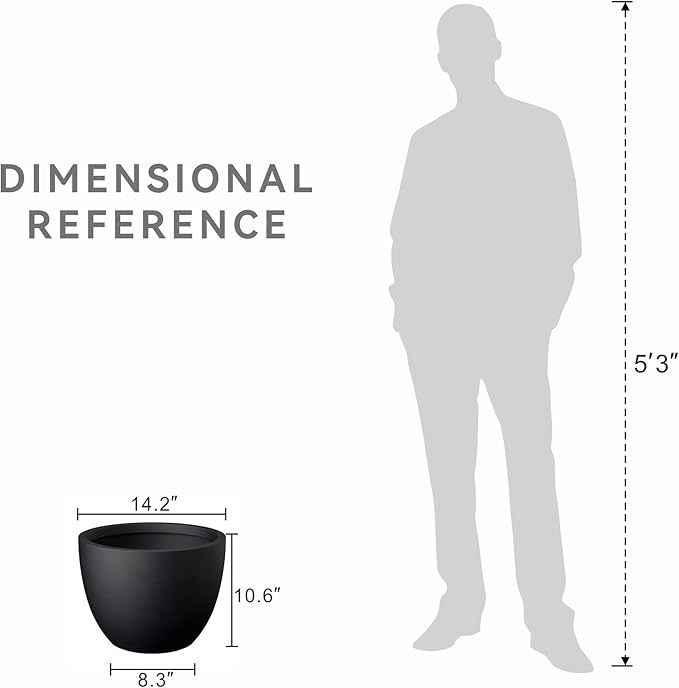 - Generous Growing Space – Thoughtfully crafted to offer plenty of room for healthy and vibrant plant growth, this planter is well-suited for a wide range of plants, from tall trees to resilient succulents and colorful flowers. Its spacious design promotes healthy root development, enhancing the overall growth potential of your plants. The robust construction ensures durability and reliability, making it a source of lasting, stable support for your gardening endeavors.