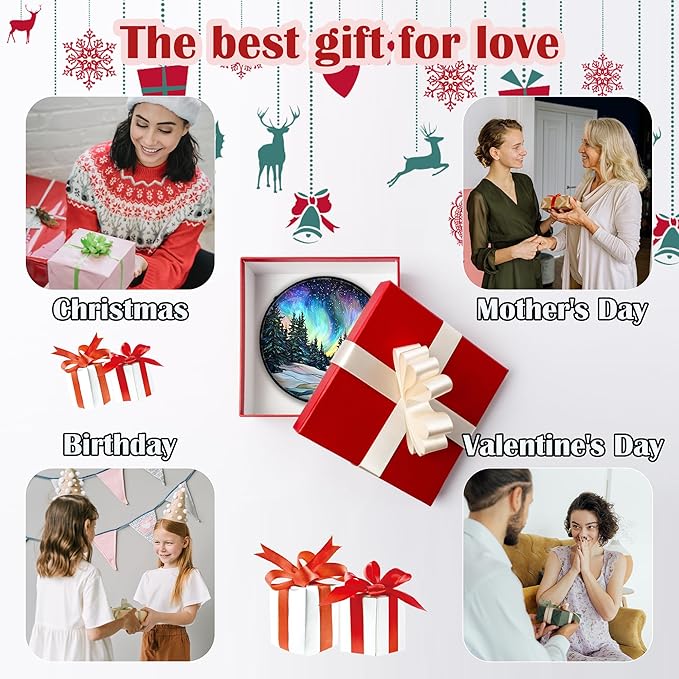 Stained Glass Window Hanging, Aurora Landscape Sun Catchers Glass Panel Green Trees Suncatcher Decor for Birthday for Women, Men, Wife, Aunt, and Mom 7.8 in