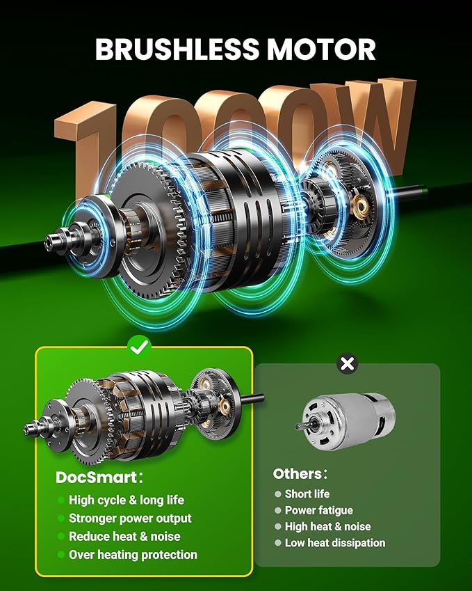 - High-Performance Motor: A 1000W brushless motor drives the mini chainsaw at 26ft/s and delivers faster and more efficient cuts, cutting 6-inch branches in 8s with no effort(actual time may vary depending on the size and hardness of the wood). Thanks to the deep quenching process, it ensures smooth cutting