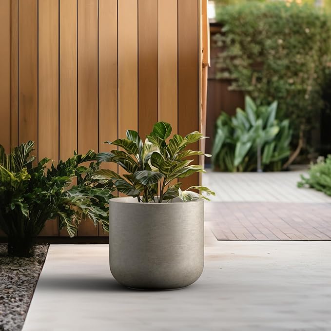 Kante 13.8-Inch Dia Round Concrete Planter, Indoor & Outdoor Garden Pot with Drainage Hole & Rubber Plug, Ideal for Flower and Tree, Weathered Concrete