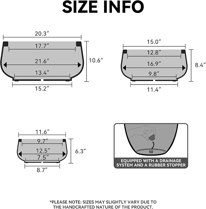 - Drainage System – Our planter pot features drainage holes for efficient water management, each equipped with a rubber plug for both indoor and outdoor use. Enjoy effortless gardening with minimal upkeep, promoting a healthy environment for your plants.