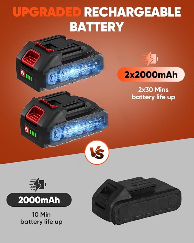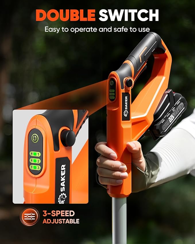 - 【Safety and Extended Runtime】 The Saker Cordless Garden Cultivator combines dual safety locks (button + trigger) with two 22V 2.0Ah batteries (30 mins each) for secure, uninterrupted gardening sessions.