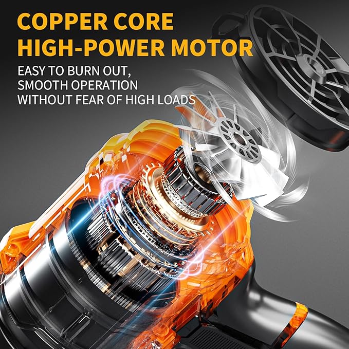 Storm Turbine,Leaf Blower Cordless with 6.0Ah 21V*2 Batteries,Handheld Electric Storm Turbine,Wind Force 13,41m/s,Suitable for Lawn Care, Patio, Leaf Blowing