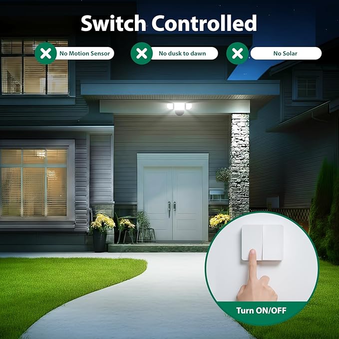 - Simple Switch Control & Easy Installation: This hardwired outdoor flood light is controlled manually via a wall switch (no motion sensor, no solar). It comes fully assembled for quick and easy mounting onto a standard junction box, making setup straightforward for gardens, garages, and pathways.