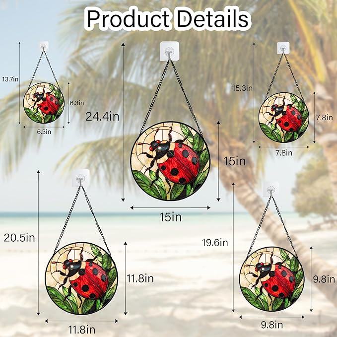 Stained Glass Window Hanging - Red Seven-Spotted Ladybug Sun Catcher for Door Home Decor Insect Suncatcher Christmas Mother's Day Birthday Gifts for Women Men Mom Nana 7.8 in