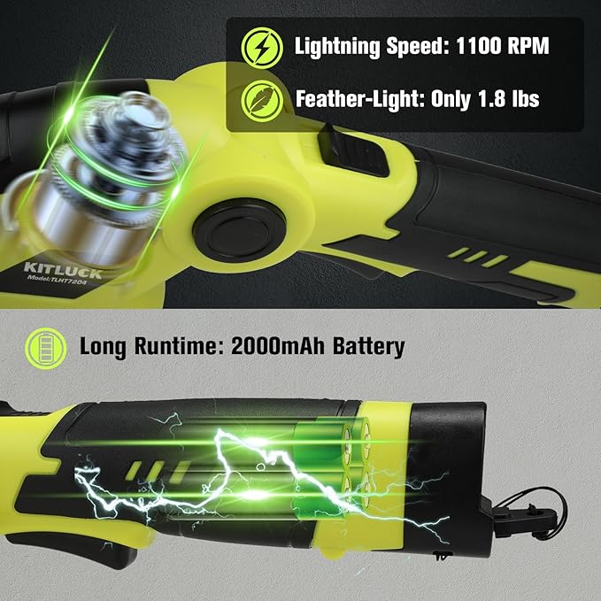 - 【POWER & ENDURANCE】 Powered by an 8V rechargeable 2000mAh Lithium-ion Battery with 1100rpm no-load speed. Features quick charging and temperature protection.