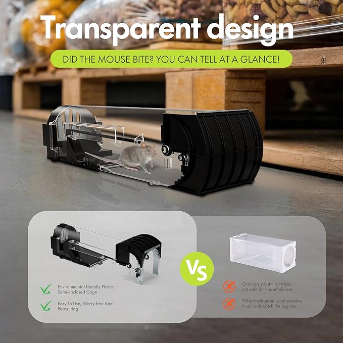 - Reusable Mouse Traps - Unlike disposable mouse cage or mouse sticky plates, our rat trap is designed for reuse. Usually, bait is placed in the cage to lure the rat. Once the rat is captured, it can be safely released elsewhere and then the trap can be set again to catch.