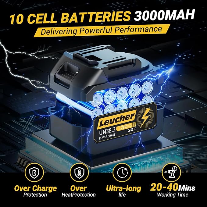 - 【21V*2 Pcs Batteries 】The cordless leaf blower with battery and charger comes with 2*21V batteries, which can work continuously for 40 minutes (20 minutes per battery), and the hand blower has built-in high temperature protection to ensure safe operation. If the machine stops, wait 20 seconds to reinstall the battery. Please fully charge the battery when not in use for a long time to extend blower cordless life.