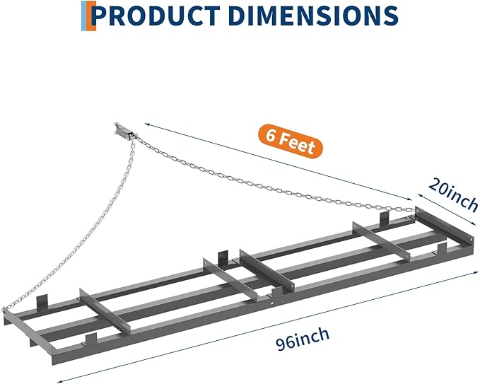 8FT Drag Harrow for ATV, Tractor & UTV, Heavy Duty Tow Behind Driveway Grader with 6FT Chain Link - Landscape Rake for Gravel, Sand, Soil & Hay - Lawn Leveling Tool for Field Yard & Pasture